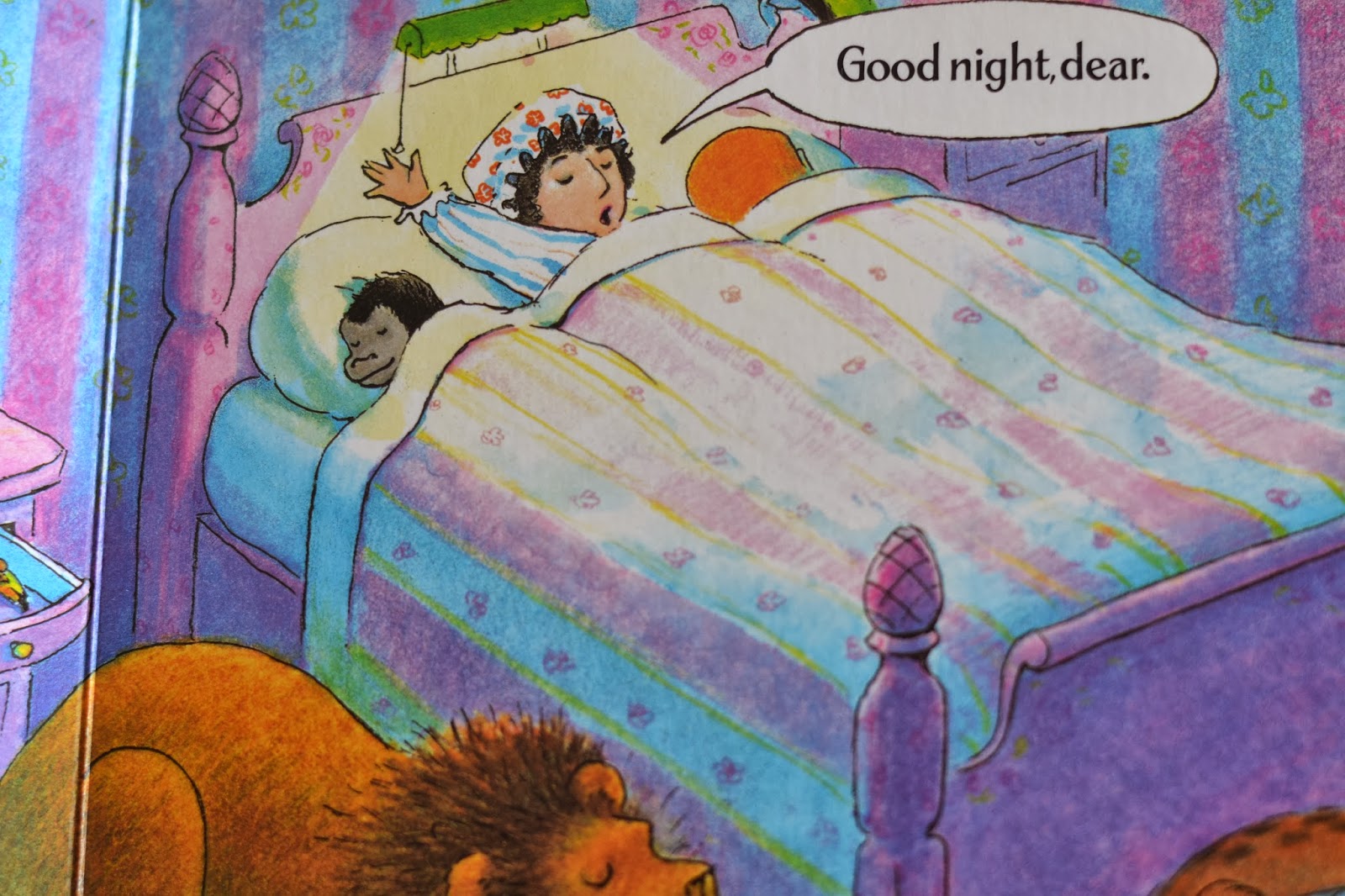 Take, for example, Goodnight Gorilla, a seemingly harmless story about a silly gorilla who steals the zookeeper’s keys and unlocks all of his animal friends. They later sneak into bed with the zookeeper and his unsuspecting wife. She turns out the lights and wakes up moments later when several of the animals wish her good night back. Nora HATED the page (below) with the eyes lit up in the dark. For many nights we had to skip that page, and then we just couldn’t read it anymore at all. It was too traumatic. Six months later, we couldn’t even read another of my favorites, 10 Minutes ’til Bedtime, also by Peggy Rathman, because the same gorilla appears on the pages mid-book. After all that time, she still remembered!