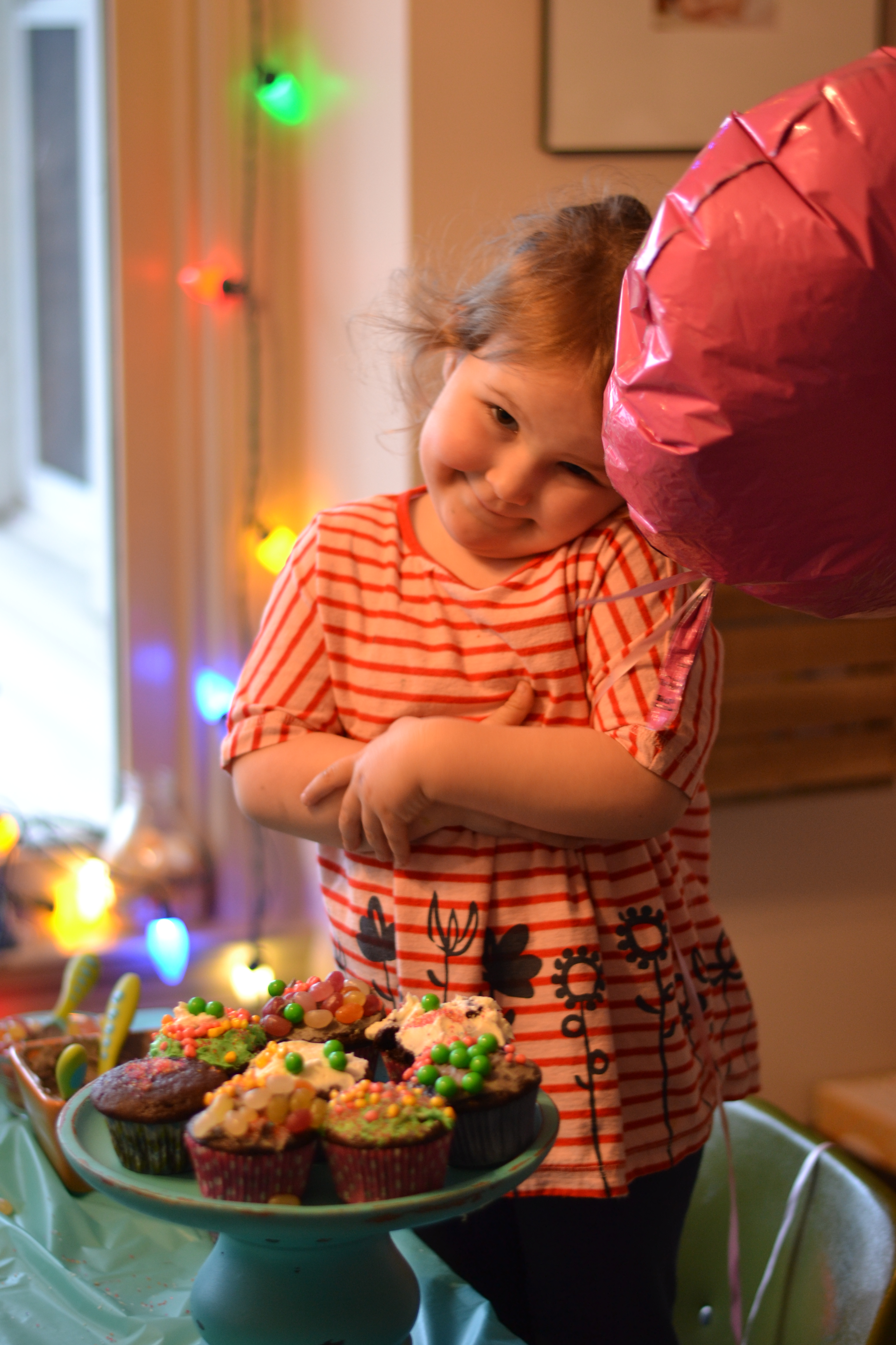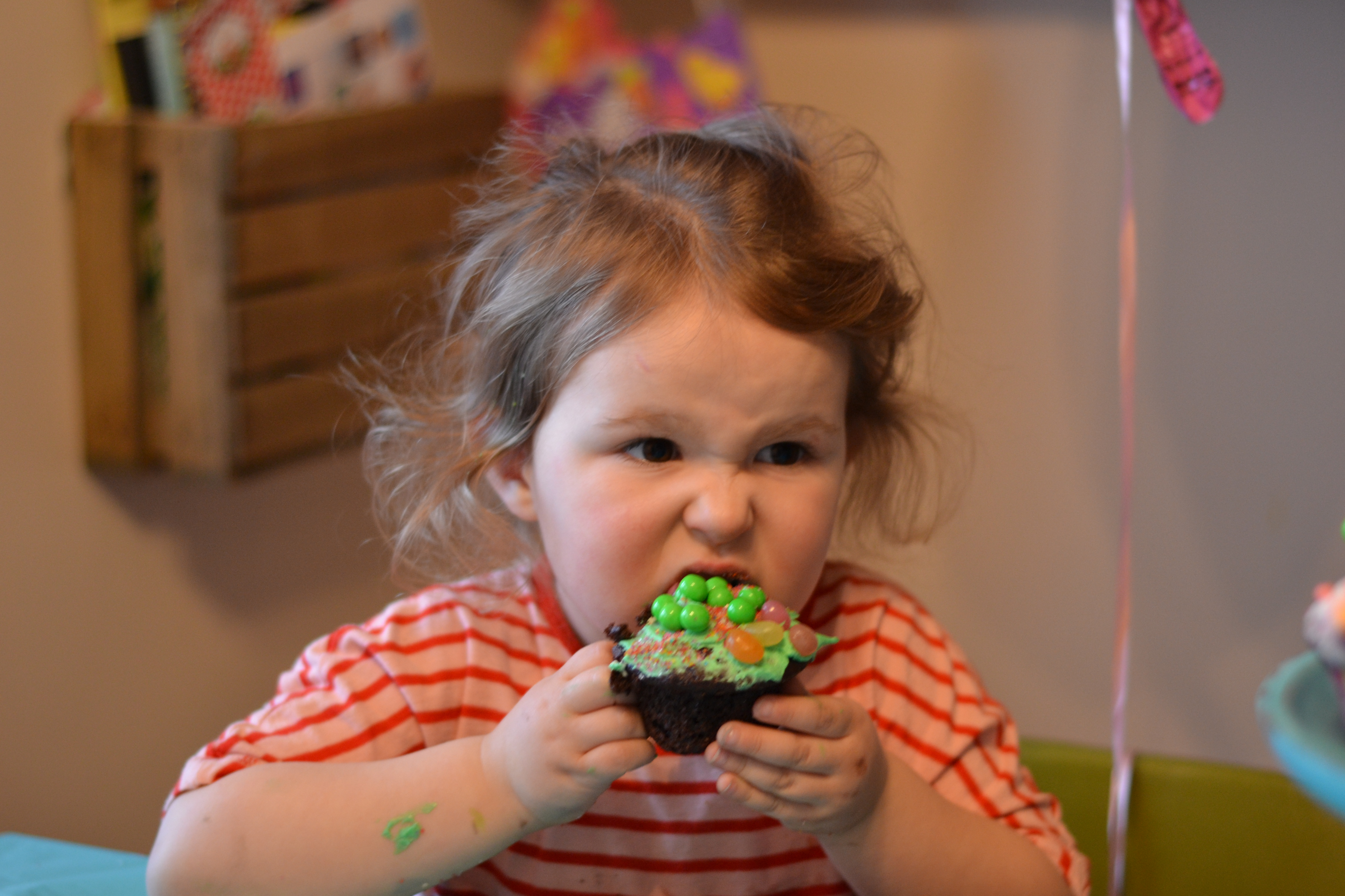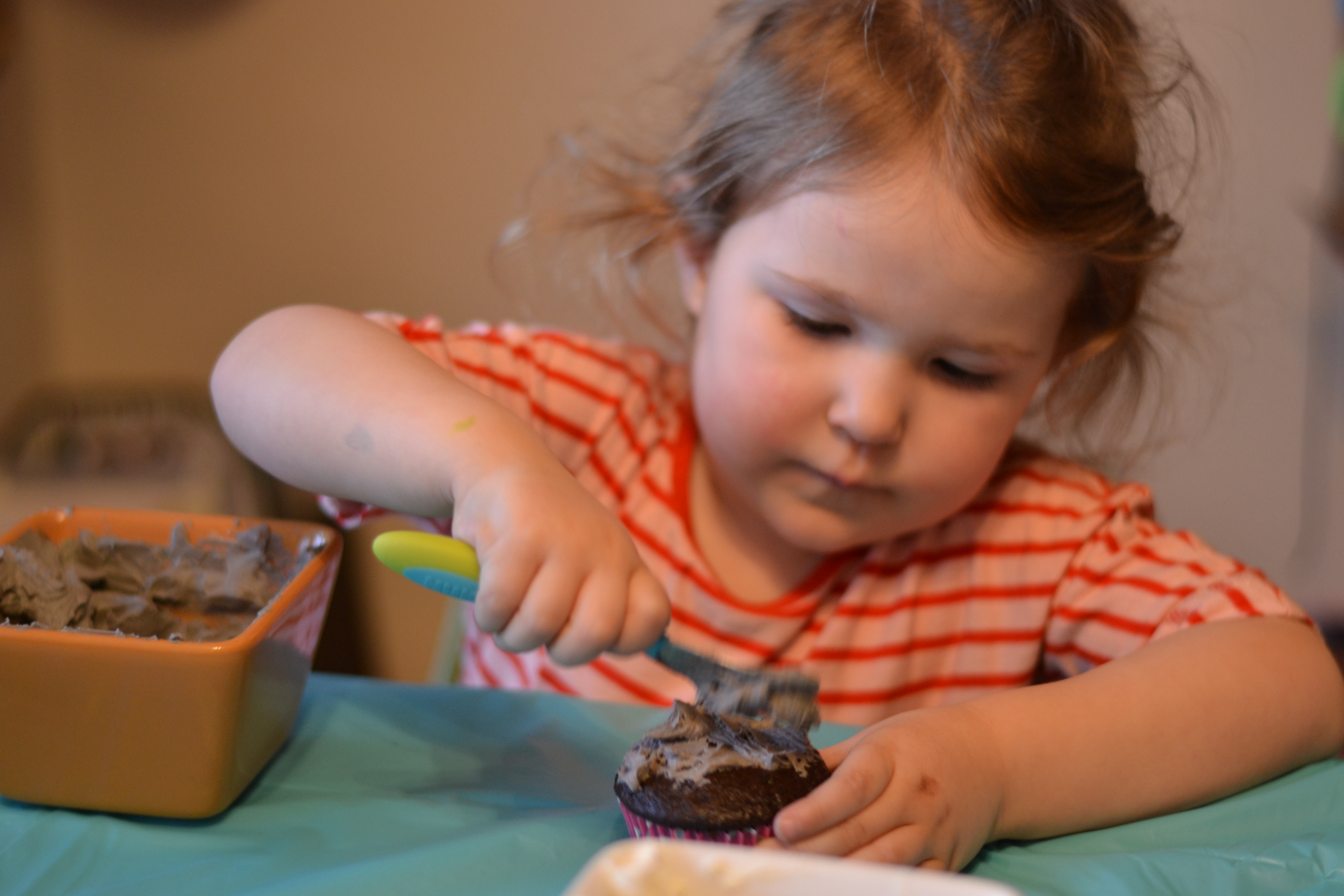 Decorating the cupcakes with icing my sister and I tried to make purple, but which the kids just kept referring to as gray. Lovely.