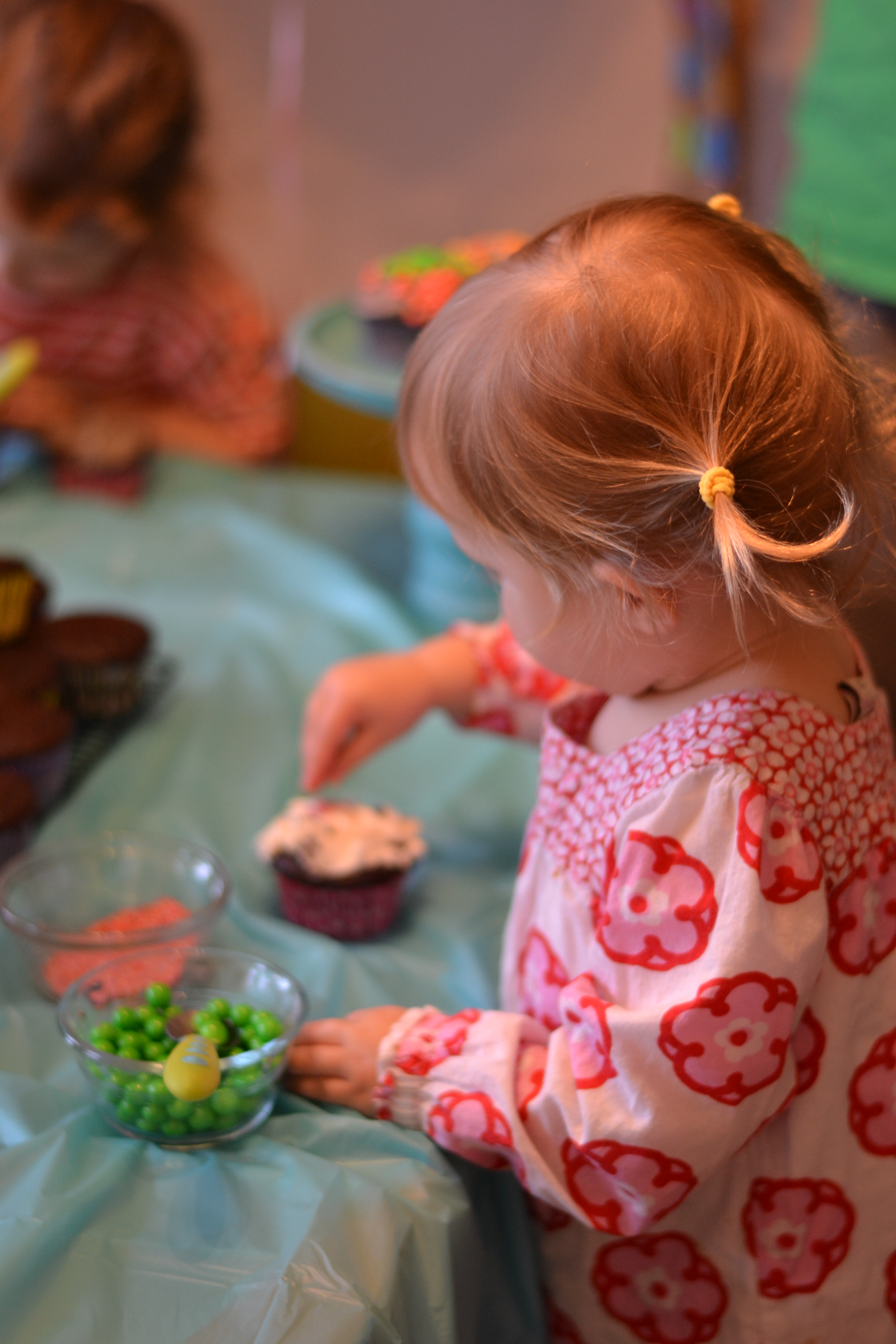 This weekend was especially busy. We decided to throw a small birthday party for Nora yesterday. We’d been back and forth about whether or not to invite several of her little friends and rent out some space to do something different. In the end, we kept things simple and just planned dinner and cupcake decorating with family. It was perfect. I’m glad we didn’t have to stress over the added planning and cost of something bigger. We can consider that next year, maybe, when the threat of a baby dropping at any time is no longer a concern.