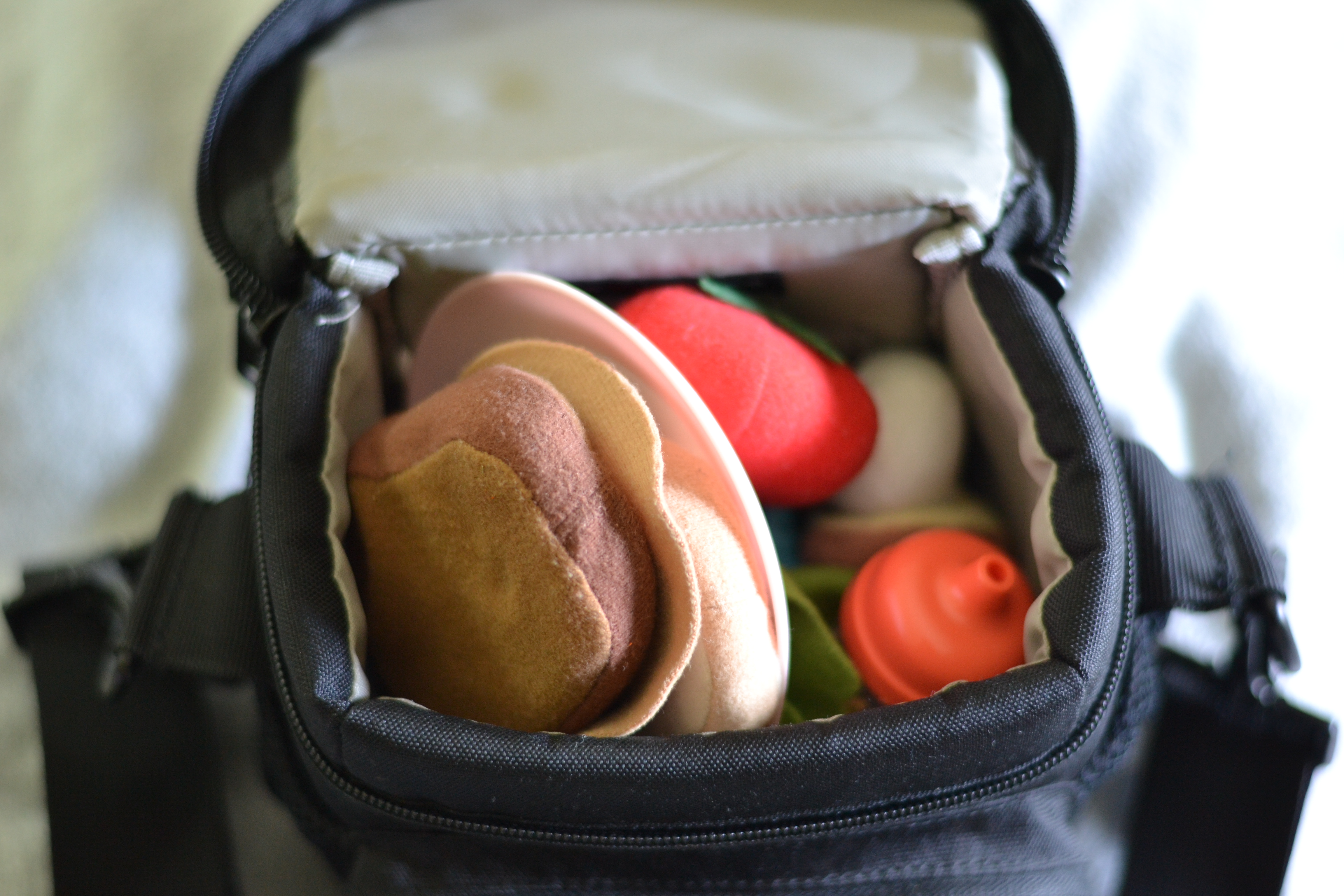 Just this morning, I was searching for Nora’s backpack, in which to store some playthings for our trip. Again, when I finally located it, I had to dump out its contents to make space for the stuff I wanted to put in it. Among the stash—probably used for a recent make-believe game of school—was a pile of coins, several puzzle piece cubes, a James Joyce novel, some kind of prayer booklet, a stripey-orange stuffed armadillo, one sandal, and a bathing suit. Hmmmm. Must’ve been an interesting day at school.