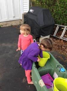 Frances sneaking a peak across the driveway to where her brother was climbing the stairs to the house solo. Uh-oh!